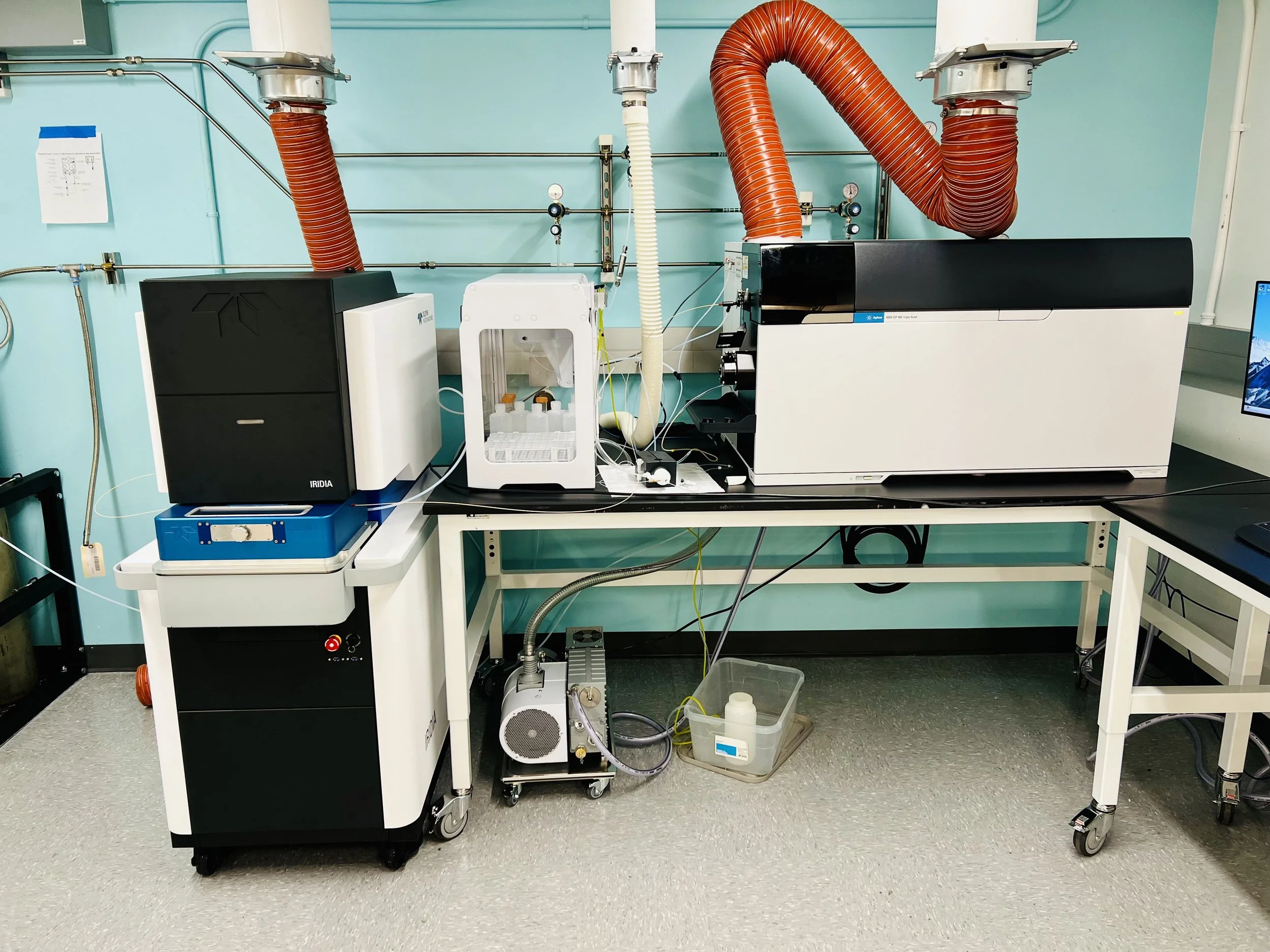 Set up includes NWR 193 Elemental Scientific Laser System with a ThermoFischer iCap quadrupole inductively coupled mass-spectrometer